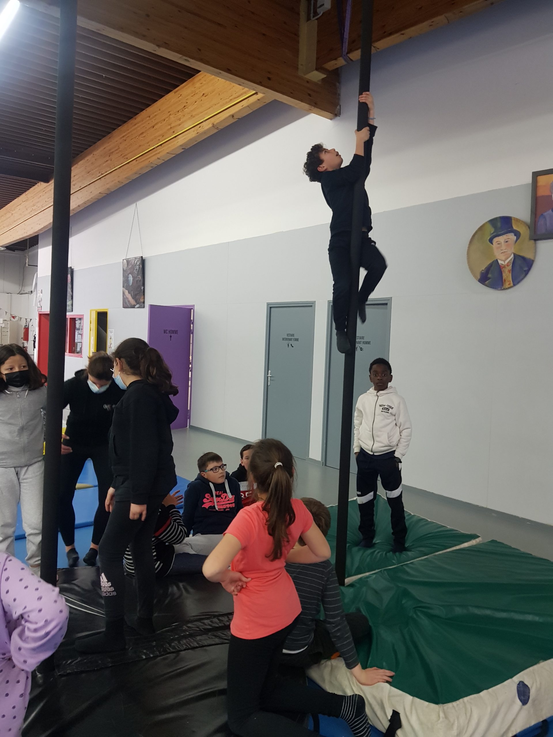 Cette année, les CM1 découvrent l’activité Cirque avec l’association Cirqu’onflexe. Le but est de développer sa motricité et de découvrir différentes disciplines. Lors de deux séances, nous nous sommes rendus dans les locaux de Cirqu’onflexe afin d’utiliser du matériel spécifique et moins facilement transportable.