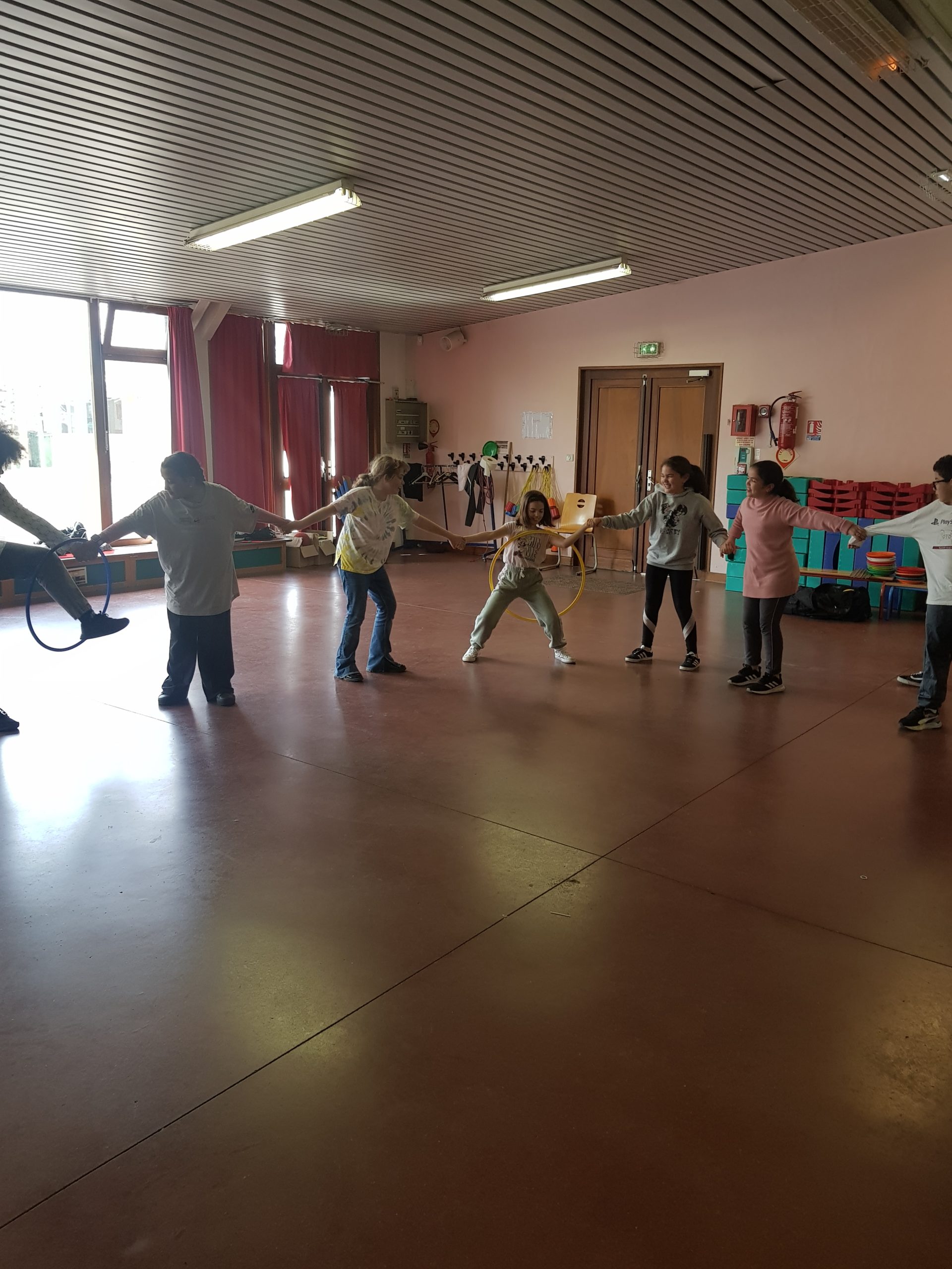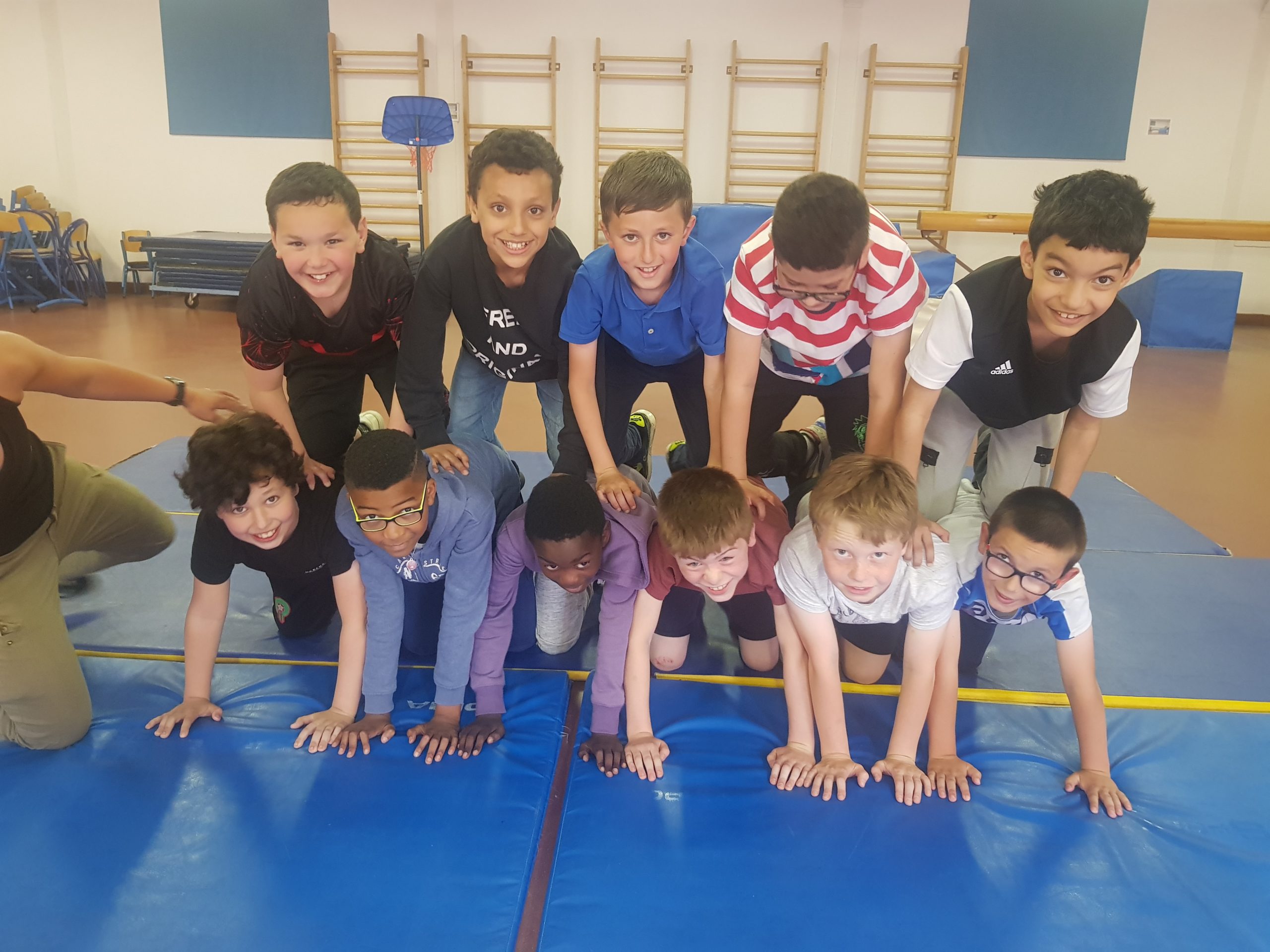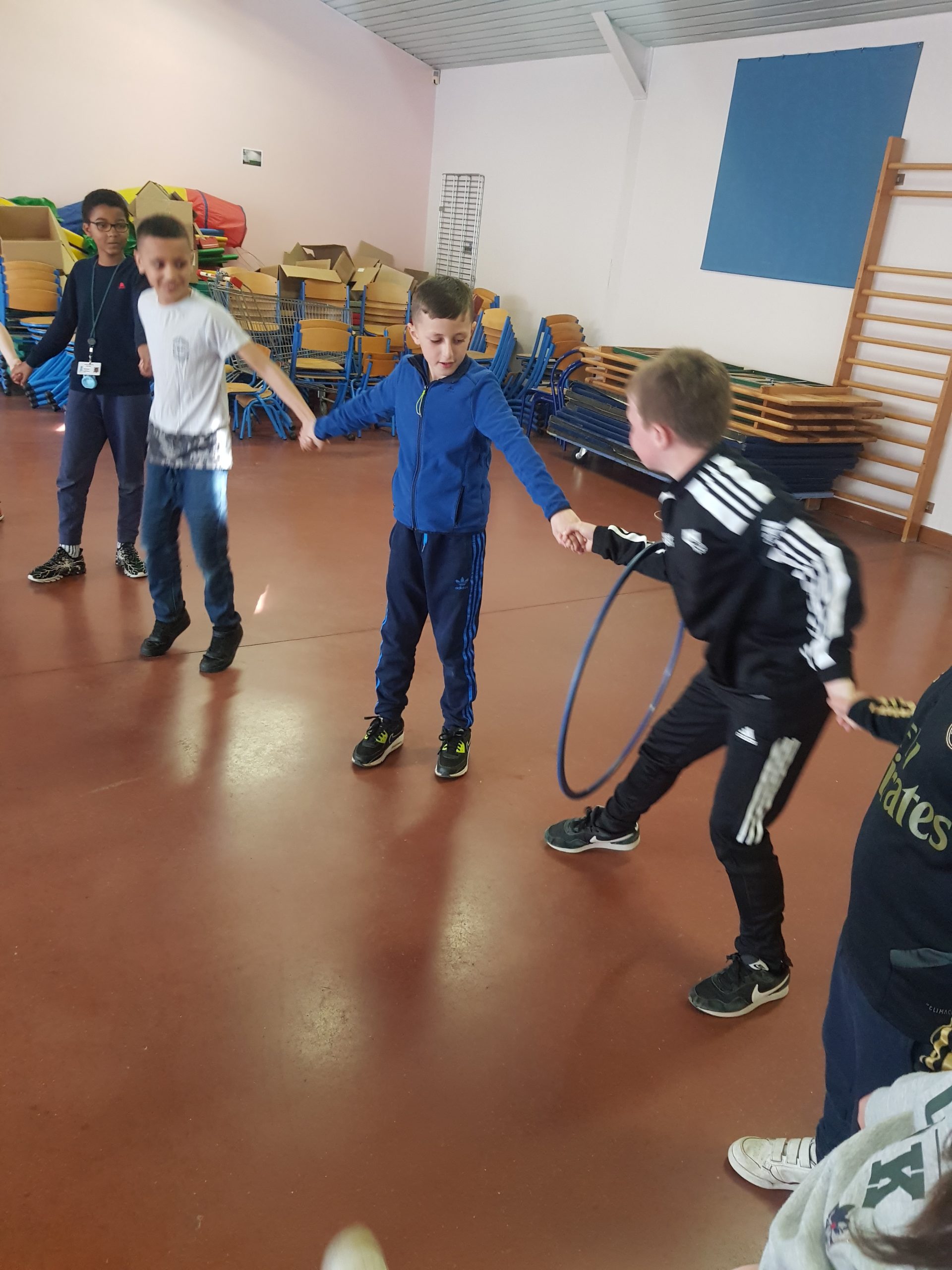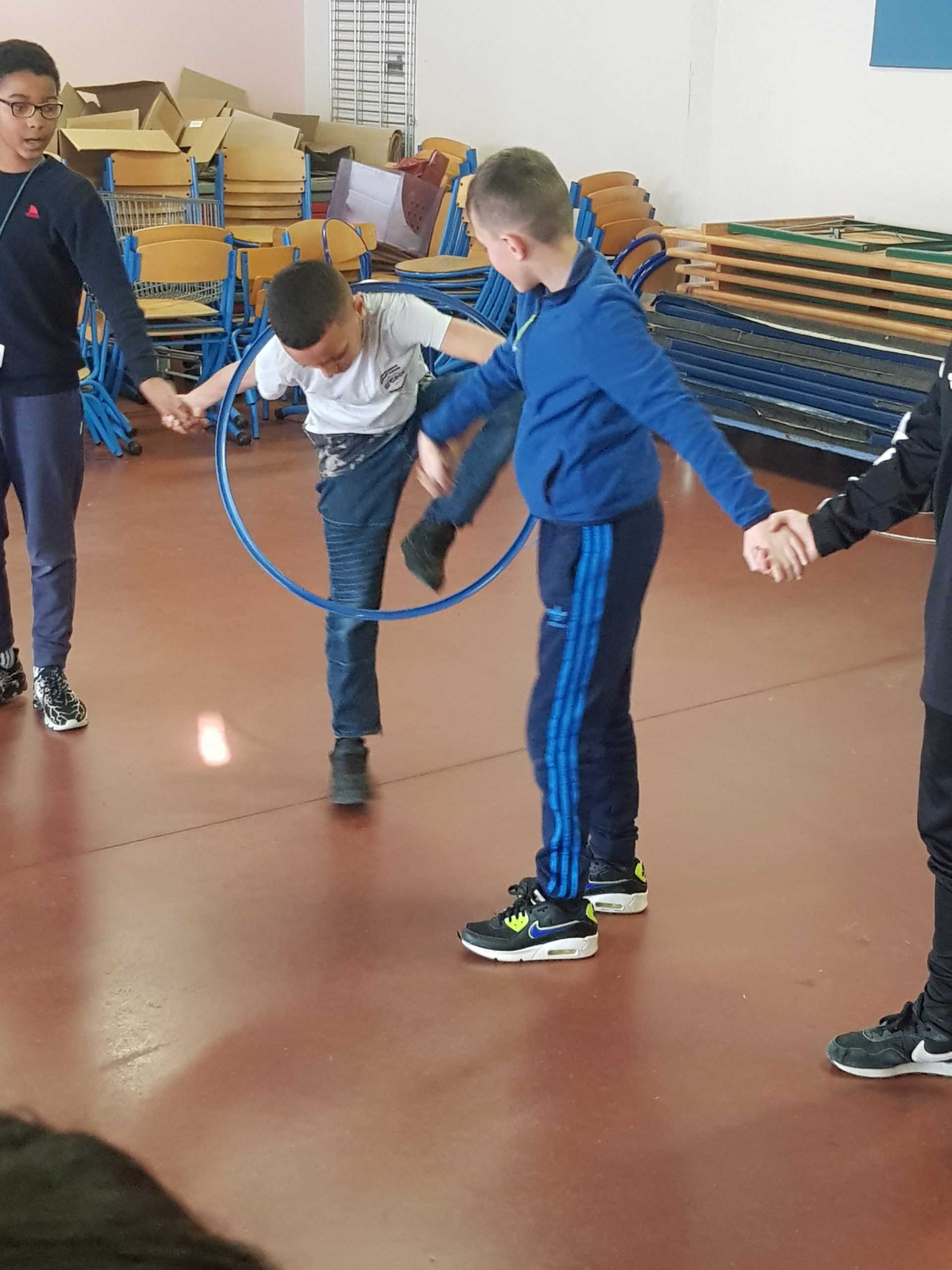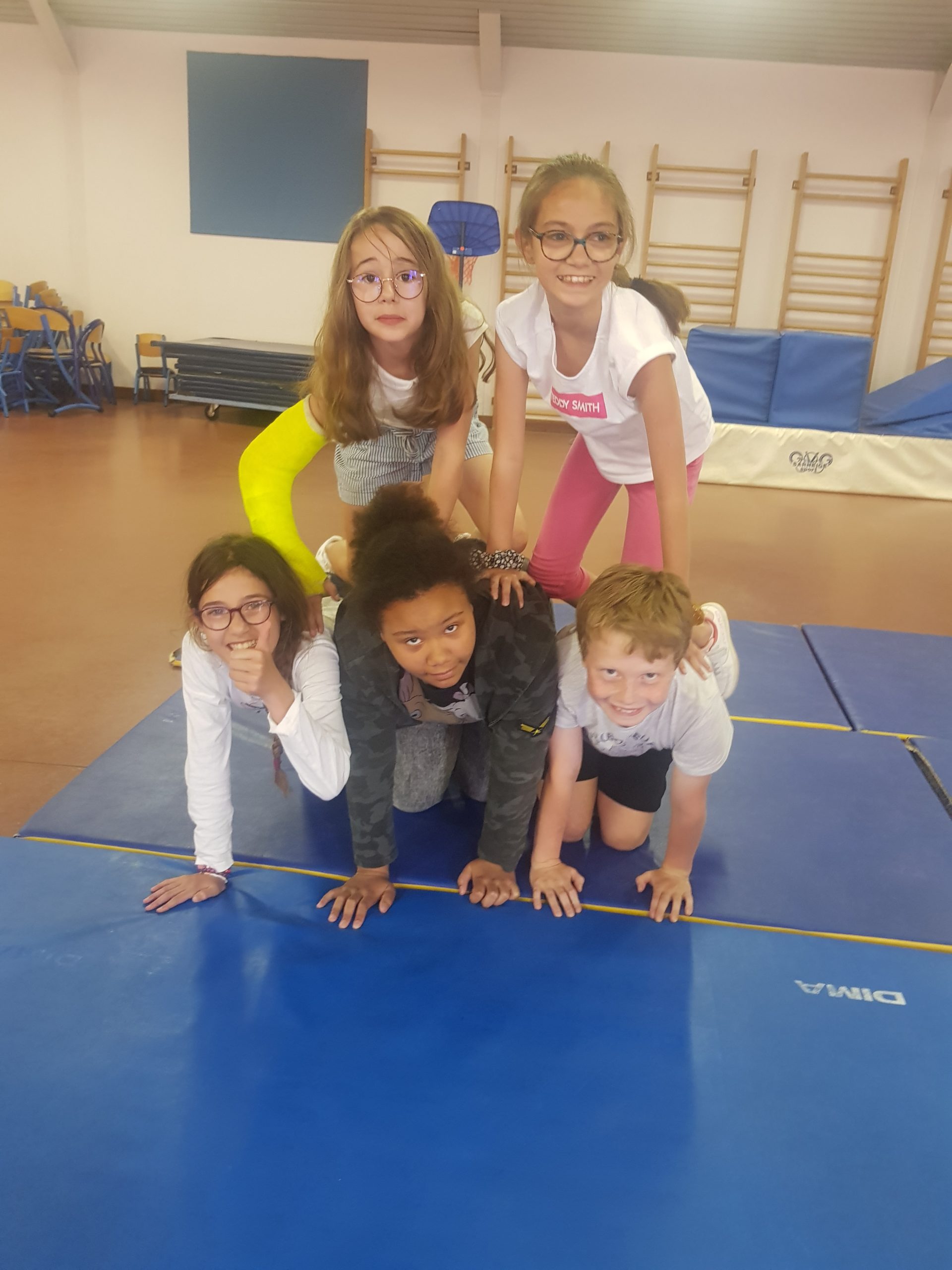 Depuis quelques semaines, nous faisons du Cirque avec Cirqu’onflexe. On travaille en groupe pour préparer un spectacle. Nous faisons des activités pour apprendre à faire plein de choses, ou au moins essayer : le bâton à fleurs, le diabolo, les balles (jonglage), le trapèze, la pyramide humaine, les assiettes chinoises, le mât chinois, le trampoline, marcher sur une boule, sur un fil, sur une planche en équilibre, le monocycle, des roulades…